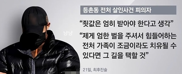 법박사 서혜진 씨가 이야기한 서울 등촌동 살인 사건에 대해서 잠시 알아보겠습니다. 이 사건은 이혼한 전처를 흉기로 찔러 살해한 사건으로 피해자인 세 딸이 살인범 아버지 신상을 인터넷에 공개하며 사건 당시 엄마와 세 자매를 놓고 누구를 죽일까를 놓고 저울질까지 했다고 하는 끔찍한 사건입니다. 이에 세 자매는 어머니를 살해한 아버지 김종선 신상공개와 함께 아버지를 사형시켜달라는 청와대 청원까지 넣은 사건입니다.
