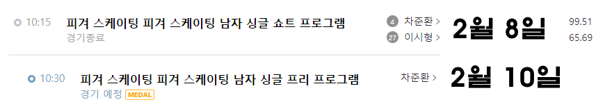 1. 피겨 차준환 경기 일정
